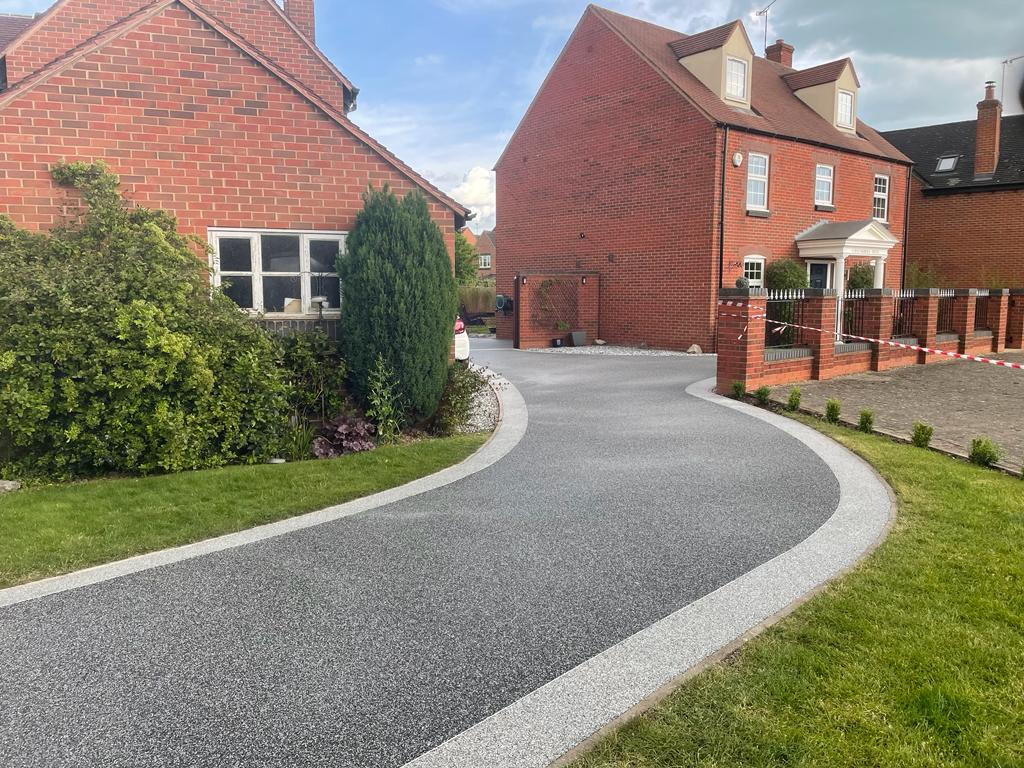 Oltco Midlands installed a 140m2 Resin Bound driveway to a property in Leamington Spa using our blends Poldark & Kernow Granite for Mr Samways.