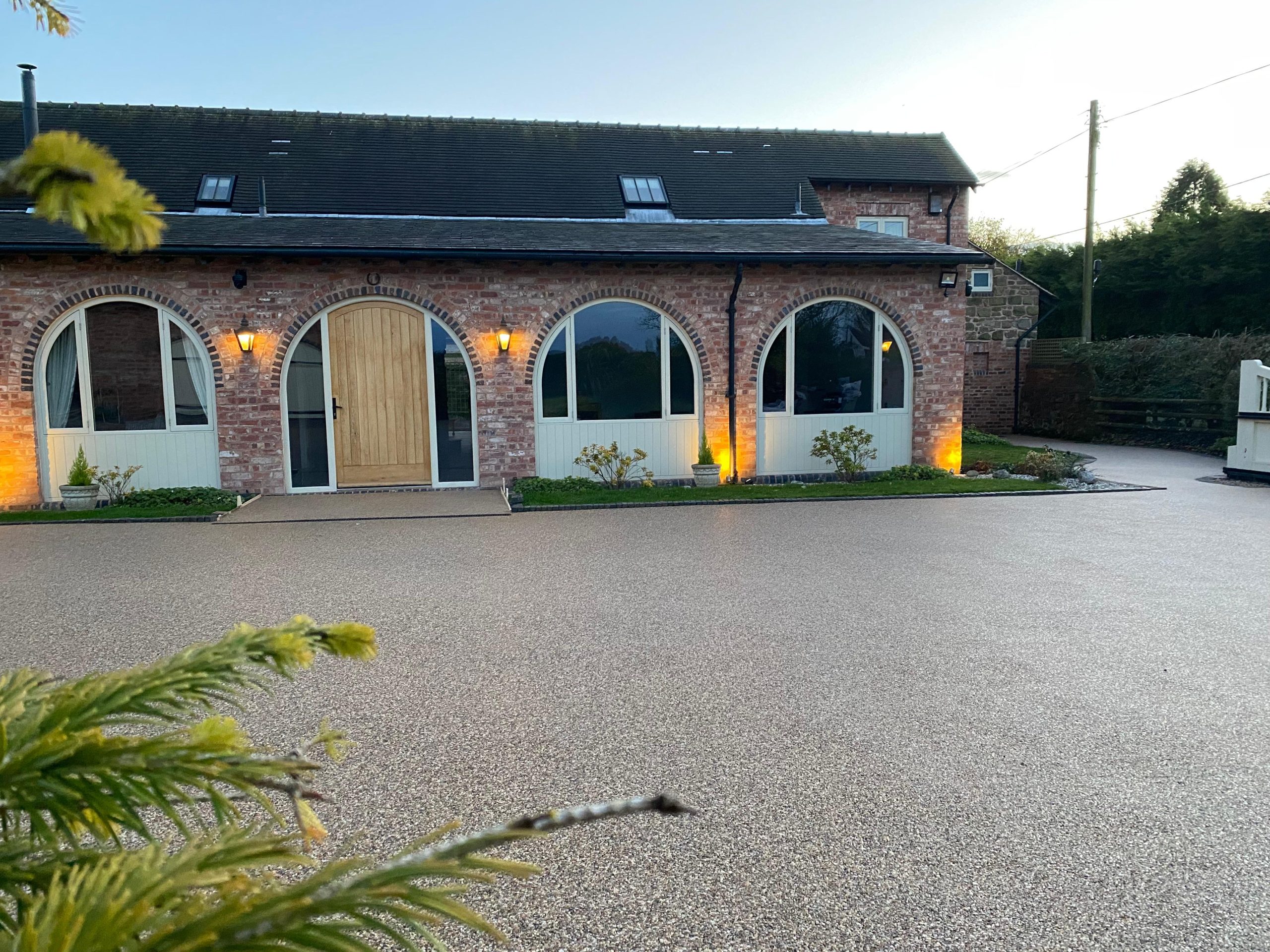 Oltco Midlands installed a 587m2 Resin Bound driveway to this stunning property in Redditch. We transformed this space using one of our most popular blends Crantock.